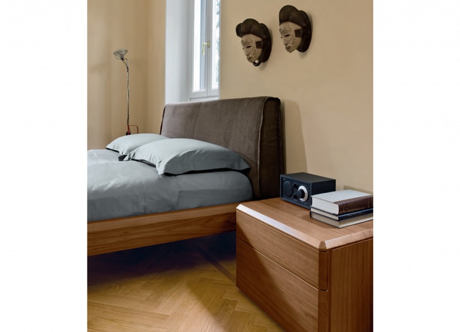 A complete bedroom system made of solid Canaletto walnut, with elegant lines that enhance the nuances and grain of the essence. The range includes bed with wooden or padded headboard, night table, chest of drawer, tallboy. Quality is easy to note in the details: the bed, its headboard and legs are carved into a bevel edge. All the units are in natural lacquered of oiled Canaletto walnut.