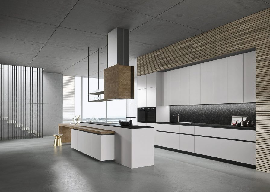 Look has a solid presence, with its large volumes, essential lines and the sharp aesthetics of panel doors (22 mm). It is the kitchen of choice for people who love the minimalism of contemporary design, but set off with exquisite finishes.