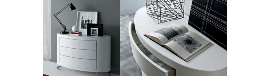Chest of drawers available with push-open mechanism, bedside table with incorporated handles. Drawers with soft-closing mechanisms.