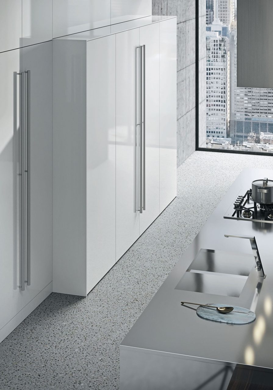 The kitchen becomes part of the architectural design, making space the protagonist by adding dramatic volume.